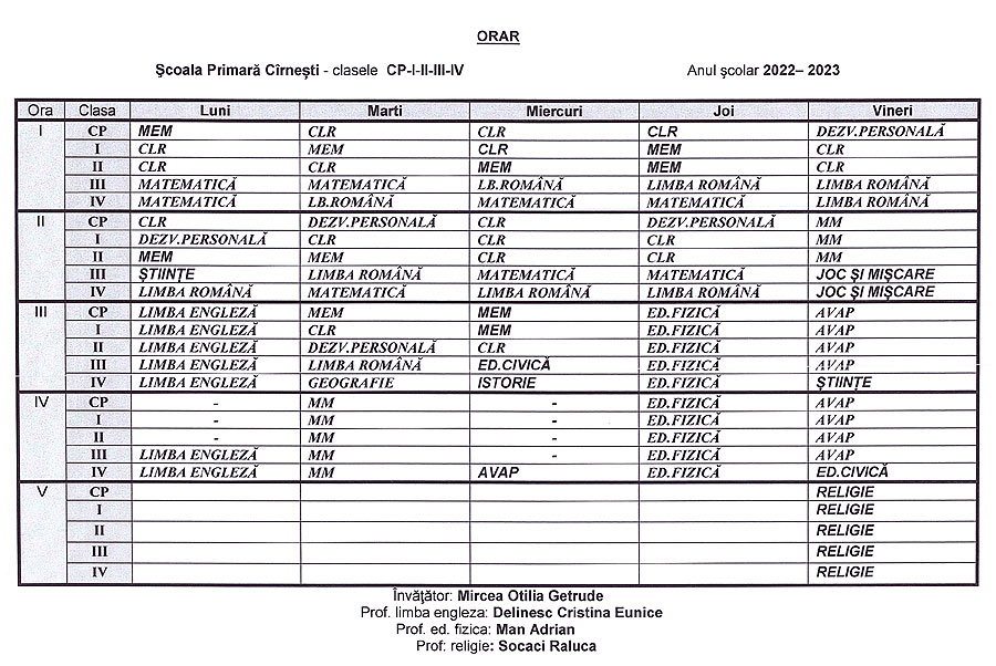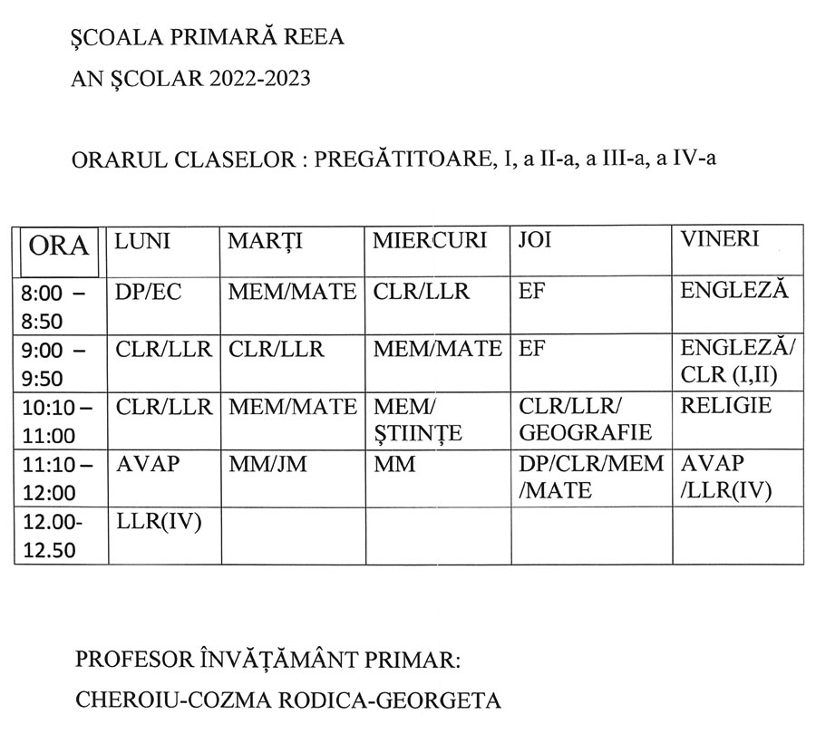 - Profesor învățământ primar: Cheroiu Cozma Rodica Georgeta