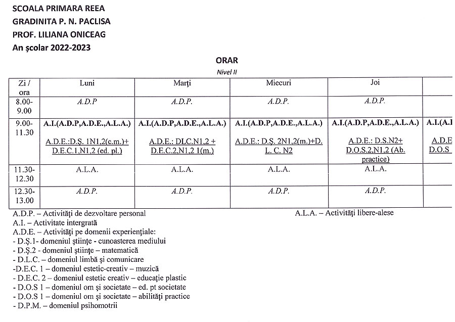 - Profesor învățământ preșcolar: Oniceag Liliana Claudia